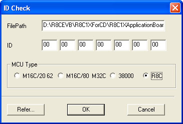 Select the file to be downloaded into the flash. Enter the ID as 0 initially as shown and select 'R8C option' in the MCU type. A screen appears as shown below.