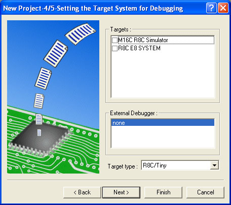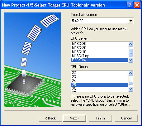 Select R8C/Tiny option from CPU series, 25 from CPU group and press Next button.