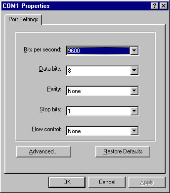 Function Description: Serial port 0 is the port available to the user. The serial port is operated in asynchronous mode with a baud rate of 9600. The port is initialized to 8 bit mode with no parity and one stop bit. The clock for the peripheral is obtained from the main oscillator. Internal baud generator is used. Least significant bit in the byte is transmitted first. Baud Rate is calculated as follows: The oscillator frequency divided by 1 option is selected as clock for serial port module. Transmission: Transmission is initiated by loading a byte to the transmitter buffer. Before loading a byte to the transmitter buffer, check for the transmitter buffer empty condition. When the buffer is empty, it indicates that the transmission of the previous byte is over and it is ready to accept a new byte. Now you can load a new byte. Reception: When the receive buffer is full, it indicates that it has received a byte. The Receive complete (RI) flag can be checked for this operation. When this flag is set to 1, a byte is waiting for you to read. Now you can read the byte from the receive buffer. Program Flow. Step 1: Step 2: Step 3: Step 4: Output: To receive the message from the serial port, connect a serial port cable between the COMM port of the PC and the Serial Port 0 Connector of the proto board. Open the Hyper Terminal application of the windows accessories. Do the settings of the port as shown below: