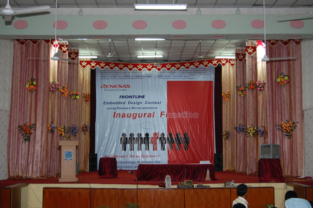 Press Release.The contest’s Inaugural function was jointly arranged by Frontline Electronics and Government College of Engineering, Salem, contest’s Academic Partner, in the college on 17 August 2007. Dr. R. Radhakrishnan, Vice Chancellor, Anna Unversity/ Coimbatore inaugurated the contest by releasing the contest documents to the students. During his speech, the Vice Chancellor explained in detail about the need of improving student’s Design Skill set apart from what they learn in the curriculum. He pointed out that these kinds of contests become the required platform for the students to conceive and develop their own products or the solutions. He also advised the students to continue working on their ideas to create intellectual properties catering to the needs of the industries in the coming days. He also stressed the need of acquiring the Future Compatible Skill set to manage the challenges students can take up in their career. Mr. Hideyuki Kobayashi, Senior Manager, Global Outsourcing, Renesas, Japan who has flown in exclusively for the inaugural function graced the function as the Guest of Honour. During his speech, he assured the continued support of Renesas, Japan for this contest and advised the student community to use the contest to implement their innovative ideas and concepts. To mark the occasion, he released the Designer Tool Kit to the participating students. Mr.Kobayashi also has released the Electronics Maker magazine that contains information about the contest and the R8C/Tiny controllers. Electronics Maker is the contest’s Media Partner Mr. K.V. Yashoranjan, Manager, Hitachi India, who is managing Renesas activities in India has introduced Renesas to the gathering and explained about Renesas activities in India. He also explained about the association of Frontline Electronics with Renesas. Mr. M.Balaji, Technical Director, Frontline Electronics explained about various aspects of the design contest in detail. He said that the contest is organized to encourage the students take up more creative hardware design challenges using 16 bit microcontrollers of Renesas, R8C/Tiny. Students can participate as an individual or as a team of not than 5 members. The contest is open to the students studying degree courses in engineering colleges of both Tamil Nadu and Pondicherry. Students perusing any branch of the electrical sciences are eligible to participate in this contest. He also informed that the students have to get a Design Tool Kit costing Rs 2,000/ that comprises specially project ProtoBoard along with all the required software tools. Students should register before December 2007 giving a brief outline of their projects and they should submit their projects by the end of April 2008. A team of experts from the industry will evaluate the projects and select the best projects for the total prize money of Rs 100,000/. An award function will be held in the college in August 2008, he concluded. On behalf of the college, Professor, Department Electronics and Communication Engg. of GCE, Mr. M.Chandrasekar welcomed the gathering and HOD/ECE, Professor, Dr. R.S.D. Wahida Banu delivered the Presidential address of the function. The inaugural function was well attended by staff members and students of the nearby engineering colleges. The contest’s Media Partner, Electronics Maker was represented by Mr. Arvind Kumar and Mr. Saravanam in the function.