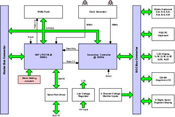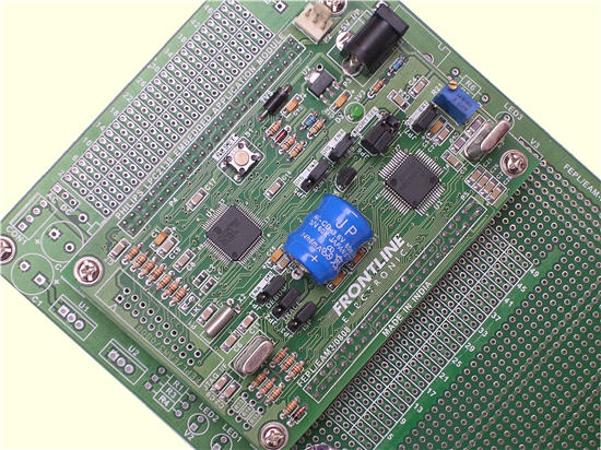 Proto Board meant for the LPC2138 EAM.One Proto Board comes along with EAM board to study and interface the user defined external modules. This Proto Board has two 50 Pin FRC headers, to mount the EAM board on the Proto Board. A proto area is available for assembling user interface modules. In addition, one dual voltage regulator circuit and one single voltage regulator circuit is available on this Proto Board to generate three user defined supply voltages. Both regulating circuits accept either DC or AC input supply. AC/DC input for dual voltage regulator is given through Proto Board connector CON1. Enable AC/DC selection jumper depending upon the input voltage. Diodes D1, D2 and Capacitors C1, C6 form filter circuit to filter the input supply voltage. Regulator IC U1 generate positive supply V1 and regulator IC U2 generates negative supply V2. LED1 and LED2 indicates presence of supply voltages V1 and V2 respectively. AC/DC Supply for single voltage regulator is given through connector CON2. Diode D3 and Capacitor C7 filters the input supply. Regulator IC U3 regulates input supply and provides regulated supply voltage V3. LED3 indicates presence of V3. You can use these regulated supply voltages V1, V2 and V3 to power external interface modules. And also you can provide power to EAM board.