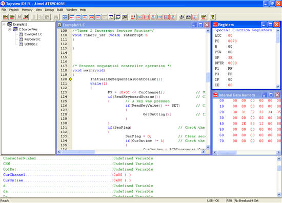 Topview IDE has 5 windows to show the internal details of 8051 controller.