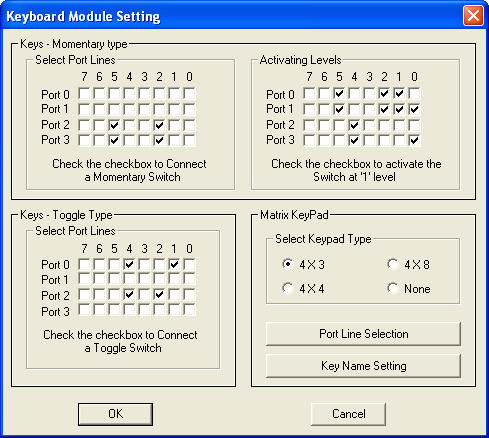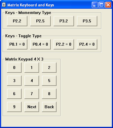 - Also toggle switches can be simulated. Maximum is 32. Key matrix, toggle switches can be connected to any port lines as per your wish list.